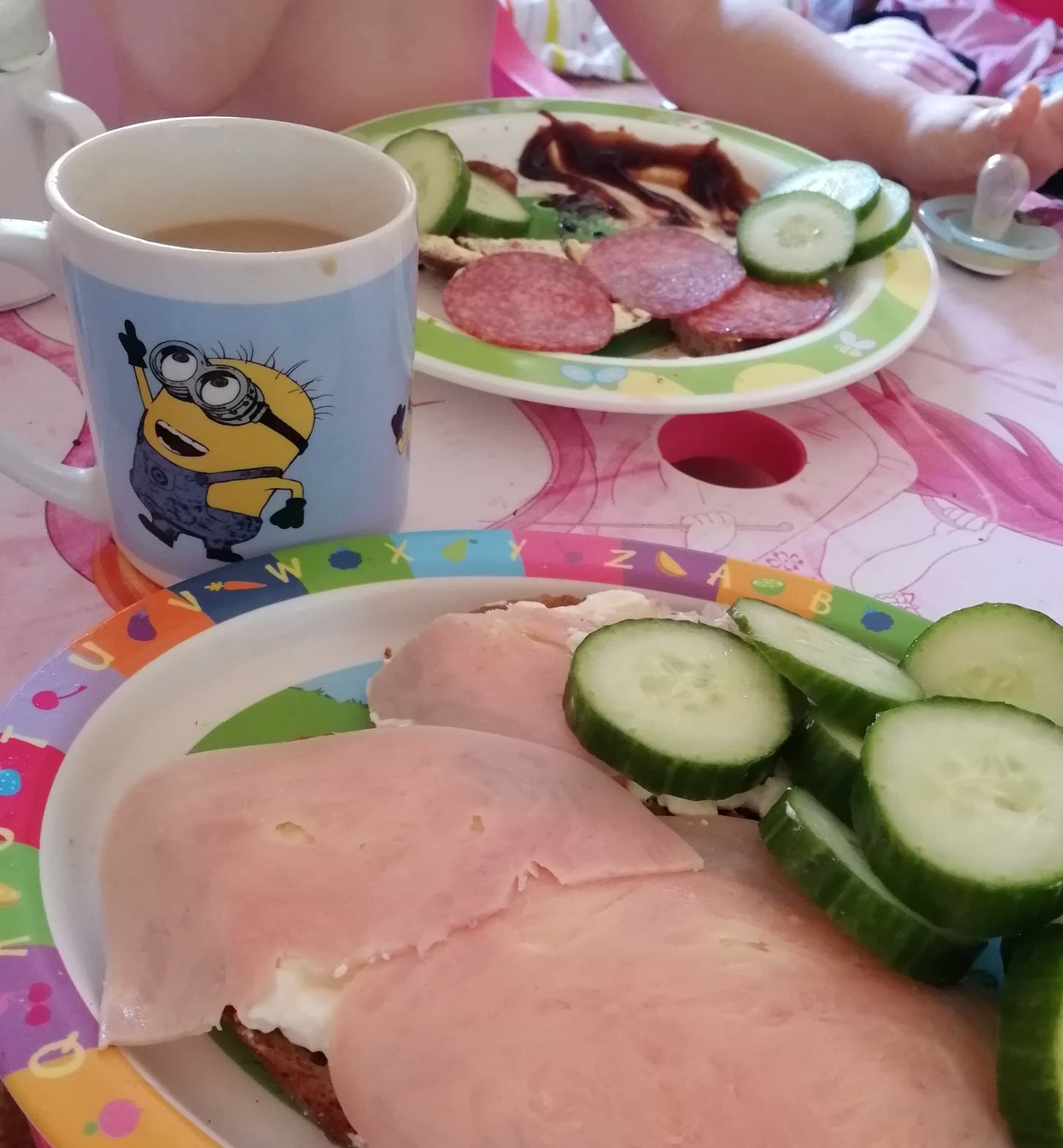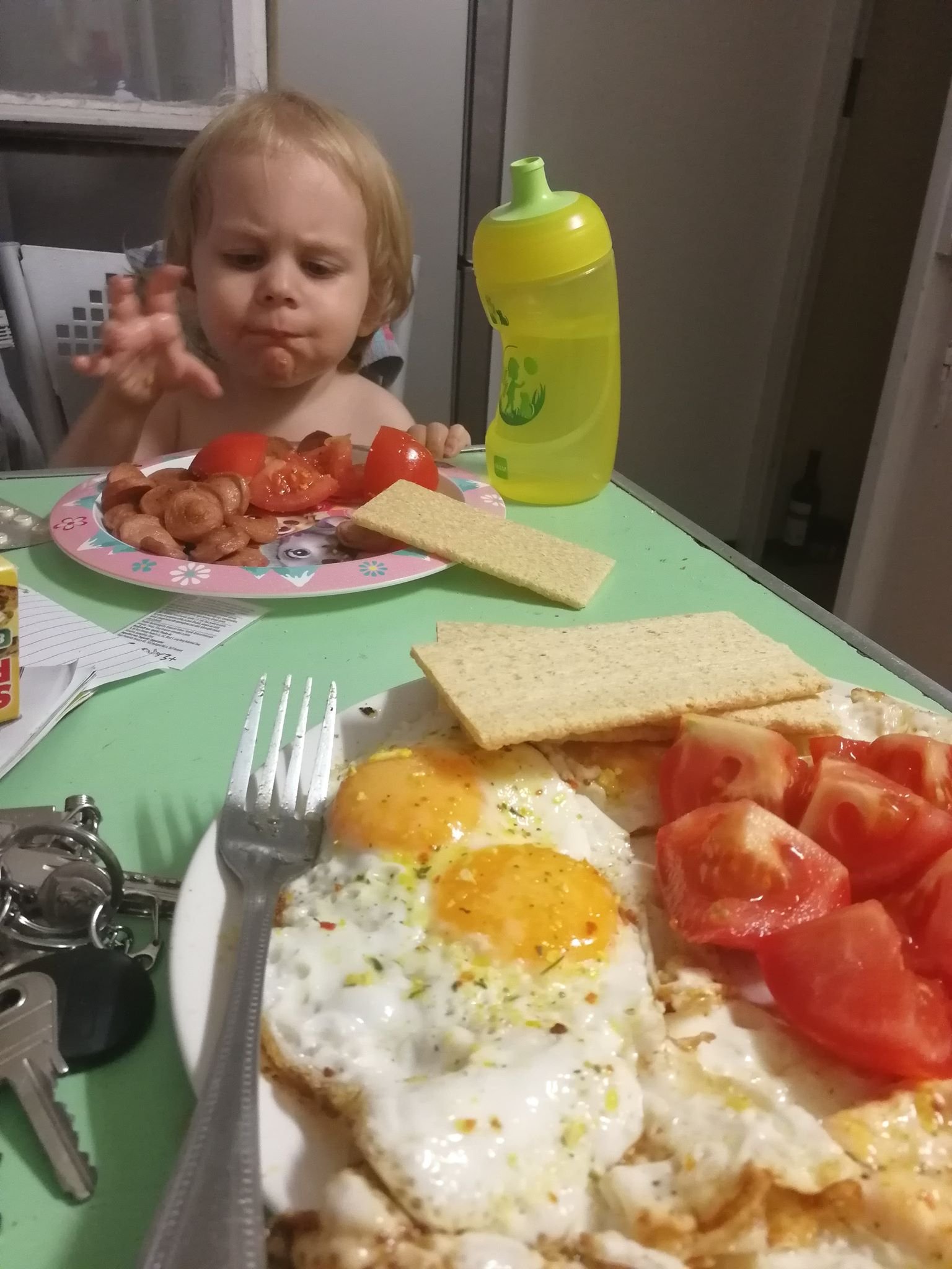 -Vacsora: vacsi is elég változatos szokott lenni, hol hideget, hol meleget eszik ilyenkor. Általában 7- fél 8 körül már megvacsorázik, alvás előtt kb 2 órával nem igen ajánlott enni. 🙂 Ilyenkor is többnyire virsli, szendvics játszik, vagy pontosan ugyan az amit ebédre kapott.
