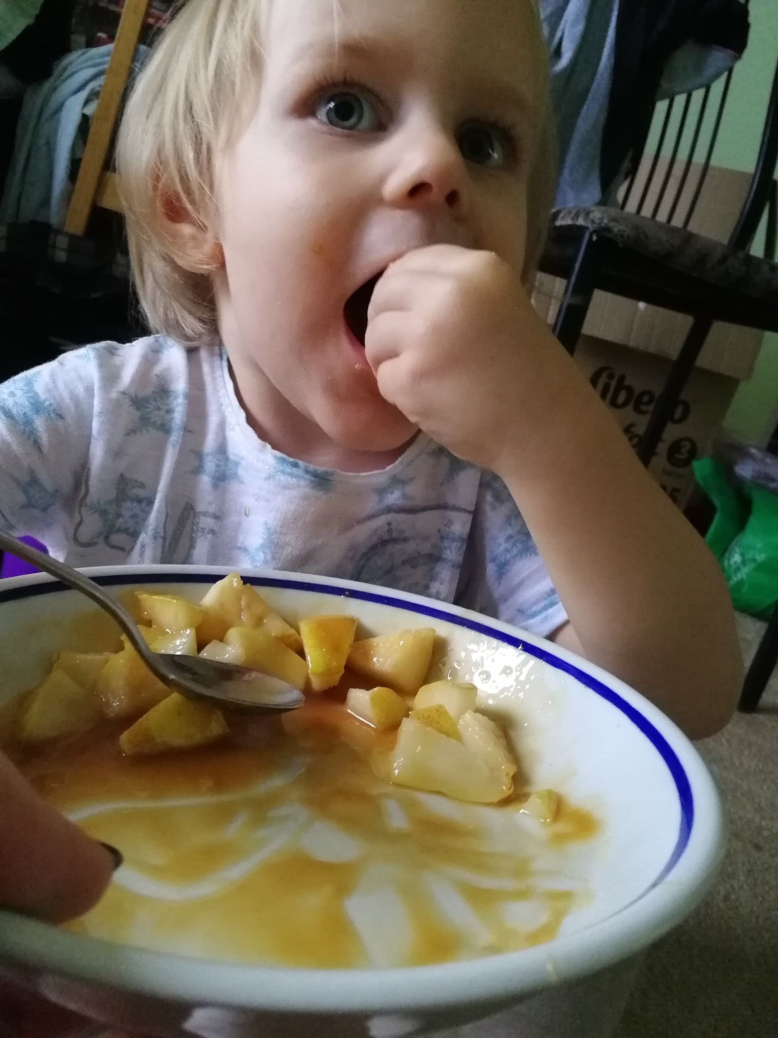 -Tízórai: ha bőségesen reggelizett és/vagy korán kelt akkor a tízórai általában elmarad. Mikor nem marad el gyümölcsöt eszik. Kedvencei a banán, körte, szőlő, áfonya. 😀 Az áfonyát gyakran turmix formájában kéri.
